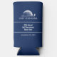 Custom Printed golf skinny seltzer can cooler with a unique golf ball and golf club logo graphic design, which you can add your Golf Club, Golf Group, family name or country club name, outing or event title and date to and create your own unique outing favour or giveaway swag and merch perfect for use as a sponsored gift or tournament prize or award. Works great as part of a branded auction basket too. Shown in navy blue and white with editable background colours and fonts, there is space on the back for optional sponsor logos or your own text