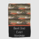 Best Dad Ever Modern Black and Rust Fisherman's gift, monogrammed with name. Fly Fishing Trout Watercolor pattern on the golf towel. This design is a great Father's Day gift.