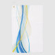 This golf towel is shown in a white colour with a blue and yellow colours artful swirl print.