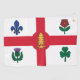 The flag of Montreal prominently displays a bold red cross dividing a white field into four quarters, each adorned with a floral emblem representing the city’s founding communities: the fleur-de-lis for the French, the rose for the English, the thistle for the Scots, and the shamrock for the Irish. At the centre sits a vivid red maple leaf symbolising Canadian unity and multicultural pride. This meaningful design adds a unique and eye-catching flair to the towel, making it a standout addition to your golf gear.