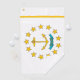 Crafted with meticulous attention to detail, this golf towel is more than just a practical accessory; it's a celebration of Rhode Island's rich history and state pride. The design proudly showcases the horizontal bands of white, blue, and gold with a circle of thirteen gold stars, symbolising independence and unity.