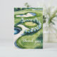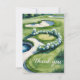 Show your appreciation with this elegant Golf Wedding Thank You Card. Featuring a serene golf course backdrop, the card includes a putting green, sand bunker, and water hazard, with a wooden wedding arbor adorned with beautiful floral arrangements. The words 'Thank You' are delicately crafted in cursive, as if cut from the grass, adding a personal and unique touch. This watercolor-style card captures the beauty and tranquillity of a golf course wedding, perfect for expressing your gratitude to guests.