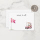"Send your greetings in style with our personalised Golf Note Card featuring a charming scene of a golf cart at the flag. Perfect for any golf enthusiast, this high-quality card is customisable with the recipient's name, making it a thoughtful touch for birthdays, thank-yous, or any occasion. Capture the spirit of the green and share your love for the game with this unique and memorable note card."