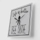 Golfer Golf Course Tee Time Grey Black Square Wall Clock