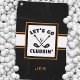 Fun golf design features "Let's Go Clubbin' " in the centre in white type arranged with two black golf clubs and a golf ball all on a white background framed in orange. The bottom portion contains a modern template for custom monogram, name or text of choice in orange. Message below this listing or email beachpause@gmail.com with custom colour requests.
