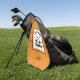 Fun golf design features "Let's Go Clubbin' " in the centre in white type arranged with two black golf clubs and a golf ball all on a white background framed in classic black. The background is bright orange. The bottom portion contains a modern template for custom monogram, name or text of choice. Message below this listing or email beachpause@gmail.com with custom colour requests.
