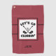 Fun golf design features "Let's Go Clubbin' " in the centre in white type arranged with two black golf clubs and a golf ball all on a white background framed in classic black. The background is crimson red. The bottom portion contains a modern template for custom monogram, name or text of choice. Message below this listing or email beachpause@gmail.com with custom colour requests.