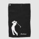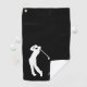 A classy design depicting a white silhouette of a golfer on a pure black background with your name at the bottom. The perfect golf gift for him. You can add your chosen name and change the background color by clicking on the personalize link.