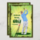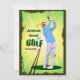You can personalise all the text on these golf tournament invitations. The design features a golfer swinging a golf club. The colours are bright and colourful. Use it for a golf tournament or it would make a great birthday party invitation as well.