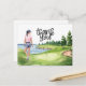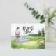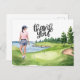 A watercolor postcard featuring a woman golfer on a serene golf course sounds delightful! The image surrounded by lush greenery, with maybe a hint of sunlight filtering through the trees. The watercolor medium would add a soft, dreamy quality to the scene, making it perfect for sending to fellow golf enthusiasts or as a keepsake for those who love both art and the sport.