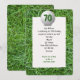 Number 70 on white golf ball on green grass for golfer's birthday party.