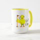 Golfing chick in curly text with a yellow chick holding a golf club and the flag in a golf hole is a funny gift design for golfers.