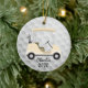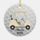 Golfing Golf Cart Ceramic Ornament on a golf ball background.