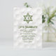 Golf themed Bar Mitzvah reception party invitation insert with a golfball background and green grass accents. This golfing Bar Mitzvah reception party insert card is stylish and modern. This golf themed Bar Mitzvah reception card features a subtle dimpled golfball background with a Jewish Star of David and golfing icon. The colours on this elegant golfing themed Bar Mitzvah design are white and green. Your son's name is in a bold font.