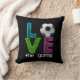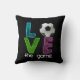Awesome soccer throw pillow with the phrase "LOVE the game." The "O" is replaced by a soccer ball.