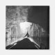 A black and white photo taken on a gondola ride under a bridge in Venice, Italy. Light reflects from the water up onto the tunnel created by the bridge. Very old buildings line the canal and another bridge arches over in the distance. This photo was taken in 2000 but looks and feels vintage.