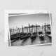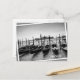 Photo postcard of a row of traditional gondolas in the water with Venice in the background in Italy in black and white with a white edge and the text 'Venice. The image is a bit rotated to create the illusion of it laying loose.