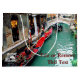 Beautiful gondolas floating peacefully on a small Venetian canal.