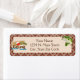 This label has a brown pattern background with a beige box on top. On the left there's a 'Gone Fishing' sign and on the right side there's an image of a fish. You can customise this label with your information.