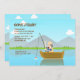 For the fishing enthusiast, a birthday invitation he's going to love! The card features a man with a fishing pole in a wooden boat and a mountain landscape background.