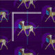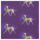 Art deco art work, featuring an Italian greyhound going shopping with a two tone blue shopping bag in its mouth. Image is repeated in offset rows with the Italian greyhound walking right to left. And set on a two toned purple background. This Italian Greyhound, is hand drawing in both gold and silver pen on paper. The art deco effect is created by it's two toned appearance. The black scribble lines running throughout the dog and running into it's background were created by my three year old daughter, who likes to help me with my art. These scribbles worked as a guide to filling in the Italian Greyhounds colour. Italian Greyhounds are a small breed of greyhound.