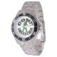 Fun Gone Squatching circular text and green Bigfoot Sasquatch motif for cryptozoology fans, easily personalise the watch style from a selection of choices of bezels and strap colours. Visit the CUSTOMIZEDGIFTS STORE for matching products and more funny Gone Squatching gifts.