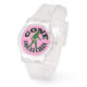 Fun Gone Squatching circular text and green Bigfoot Sasquatch motif for cryptozoology fans, Choose the colour of the background from a choice of over 200 colours  by clicking Customise>Edit>Background easily personalise the watch style from a selection of choices of bezels and strap colours. Visit the CUSTOMIZEDGIFTS STORE for matching products and more funny Gone Squatching gifts.