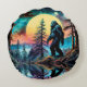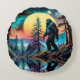 Gone Squatchin' Colourful Sasquatch Landscape Round Cushion