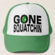 Popular funny gone squatchin Bigfoot text slogan design with a green Bigfoot logo.