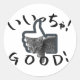 Stickers had a glossy finish which gave them a very professional look. The colour is perfect. And they are the exact size of my lip balm lids. Printing is crisp and clear. Will definitely be ordering again.