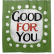 "Good For You" is a fun text design with a white accent shape surrounded by white whimsical textured dots.