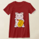 The maneki neko is a cat that symbolises good fortune in Japan. This particular cat beckons with its right paw and holds a koban coin with the other. You can use the customise it button to change the background colour if you like.