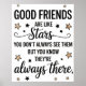 Celebrate the enduring bond of friendship with this beautiful quote design. Featuring the heartwarming message, "GOOD FRIENDS are like stars you don't always see them BUT YOU KNOW THEY'RE always THERE," this design is accented with charming star illustrations. Perfect for expressing appreciation for your friends, this versatile design is ideal for prints, cards, gifts, or home decor items. Share this sentimental reminder with your closest companions or add a touch of warmth to your own space. It's a lovely way to honour those special connections that shine bright, even when far away.