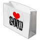 The word Good and a red heart above the word. Funny t-shirts, gifts, prints, souvenirs for fun and good mood.