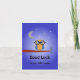 A Good Luck card showing an owl wearing over-sized spectacles and sitting on the branch of a tree. In the background is a crescent moon and stars against a night sky. The greeting is "Good Luck" (customisable), and the text is also editable for example for a specific exam or test. The customisable message inside is "Thinking of you, and wishing you every success" - just type in the boxes to edit.