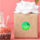 Good Luck Four Leaf Clover Shamrock sticker. Modern abstract green pattern with trendy white typography quote Good luck and hand-drawn clover with four leaves for luck.