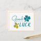 Good Luck Four Leaf Clover Shamrock postcard. Good luck quote and hand-drawn clovers with three leaves and four leaves for luck.