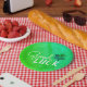 Good Luck Four Leaf Clover Shamrock St. Patrick`s day Plates. Modern abstract green pattern with trendy white typography quote Good luck and hand-drawn clover with four leaves for luck.