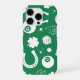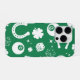 Good luck sticker with green and white lucky pattern design with four leaf clover, shamrock, horseshoe, dice, eight ball.