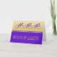 A smart card to wish a cyclist "Good Luck". The default message inside is "Have a great race!" or you can just type in the box to change this according to your preference. The design on the front is in purple and gold colors, and shows three pictogram cyclists above the GOOD LUCK caption. Just for fun, there are two cycle wheels instead of the O's of Good.