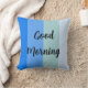 Cool blue and light green stripes pattern and a customisable text saying: Good Morning. Fits a cheerful marine style.