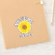A photograph of a bright yellow sunflower with text "Good Morning (Custom Name)".