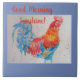Good Morning Sunshine Blue Red Rooster Tile. Designed from one of my original watercolors. This bright red rooster is sure to be a hit with any gift receiver!