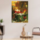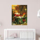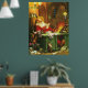 A charming vintage Christmas poster featuring Santa Claus reading lists of wishes surrounded by his diligent elves.