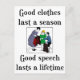 Good clothes last a season, good speech lasts a lifetime. Vintage school book artwork from the 1920's of a woman with two children. This nostalgic saying teaches the importance of English grammar.