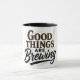 Start your day with a positive mindset! This motivational mug features the encouraging quote "Good Things Are Brewing" in stylish modern typography. Perfect gift for colleagues or anyone who needs a morning lift.
