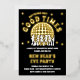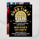 This Black gold foil party invitation features a disco ball and retro typography, giving it a fun and playful vibe. The front of the invitation is adorned with a black background and a glittering disco ball, stars, dance girls setting the tone for a lively and energetic celebration. The retro typography adds to the theme, giving the invitation a nostalgicically chic feel. On the back side of the invitation, custom photo of the party girl adding a personal touch to the design.