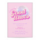 This pink party invitation features a disco ball and retro typography, giving it a fun and playful vibe. The front of the invitation is adorned with a pink background and a glittering disco ball, setting the tone for a lively and energetic celebration. The retro typography adds to the theme, giving the invitation a nostalgicically chic feel. On the back side of the invitation, custom photos of the birthday girl and her friends are featured, adding a personal touch to the design.