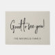 Cute taupe doormat features fun "Good to see you!" quote in black hand lettering with your family's last name in simple typography on a modern neutral background.