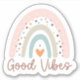 Imagine adding a touch of bohemian charm and positivity to your everyday life with a sticker featuring a rainbow design in muted colours and the uplifting phrase "Good Vibes." This sticker is not just a decoration but a statement piece that radiates positivity and creativity wherever you place it.
